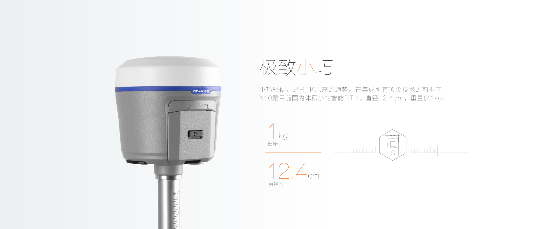 華測X10 GNSS接收機(jī),是RTK領(lǐng)域內(nèi)的一次大膽的進(jìn)化。它精致小巧但大有可為,快速精準(zhǔn)的測量,堅固抗摔的材質(zhì),持久耐用的續(xù)航,和智能強(qiáng)悍的配置,為用戶帶來全新的測量體驗。